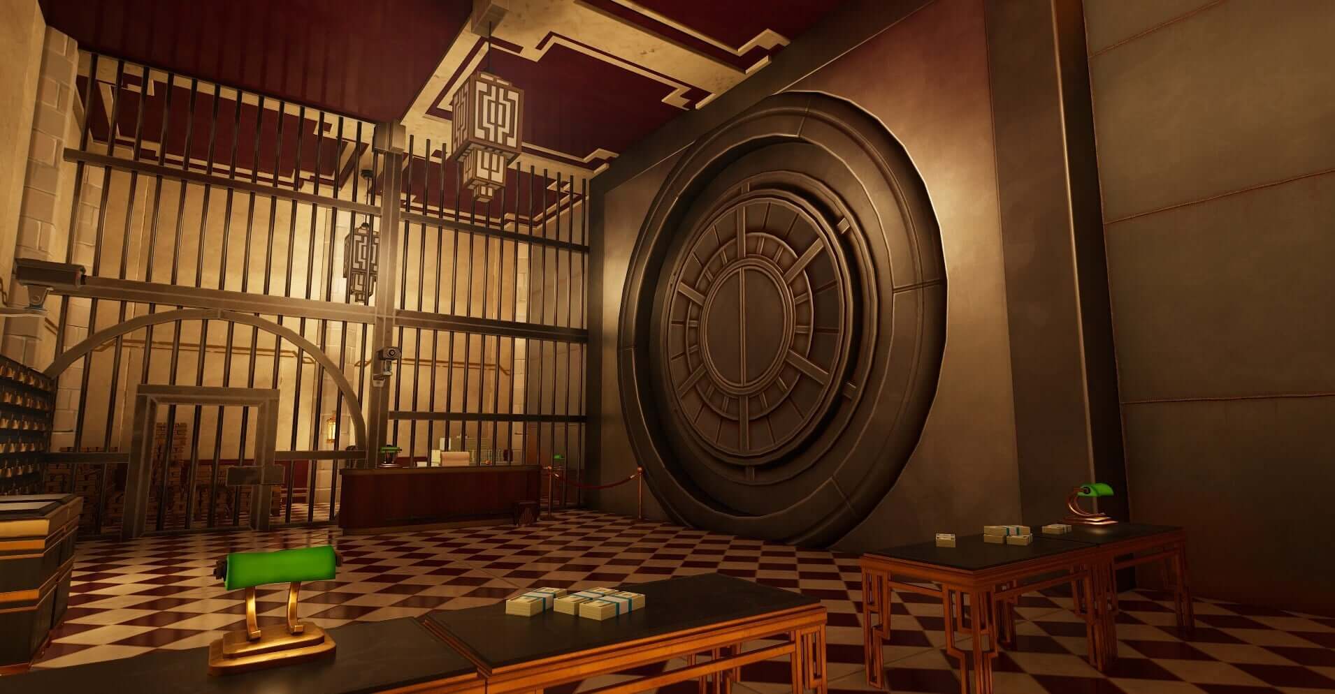 The Vault: A high-interaction gameplay zone built around KitBash3D’s modular vault structure and iconic vault door. Surrounded by ATMs and mission-critical interiors, it serves as one of the city’s most active points of engagement.