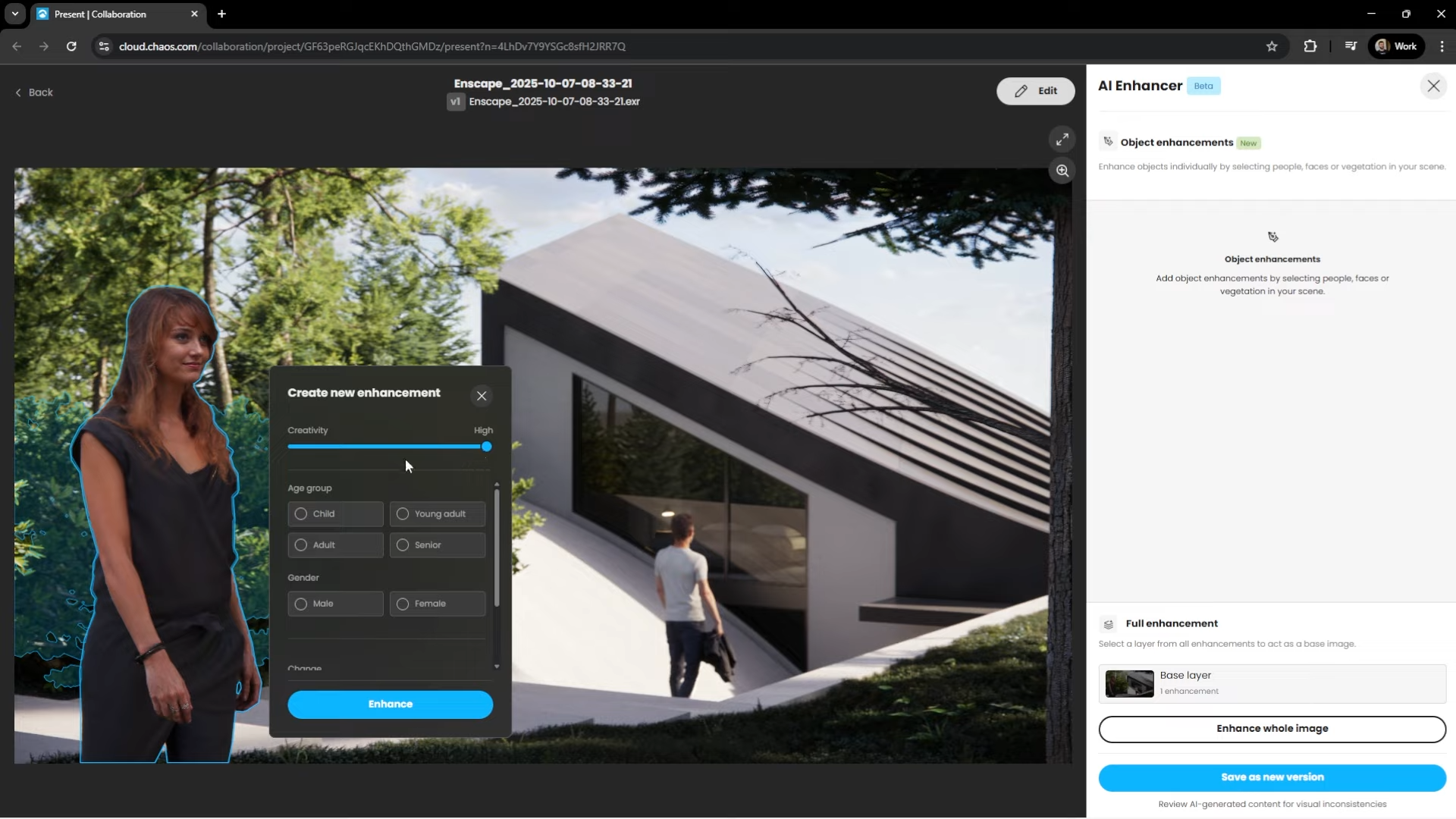 Enscape’s AI Enhancer was already a one‑click upgrade tool. Now it offers deeper customization and more creative control.