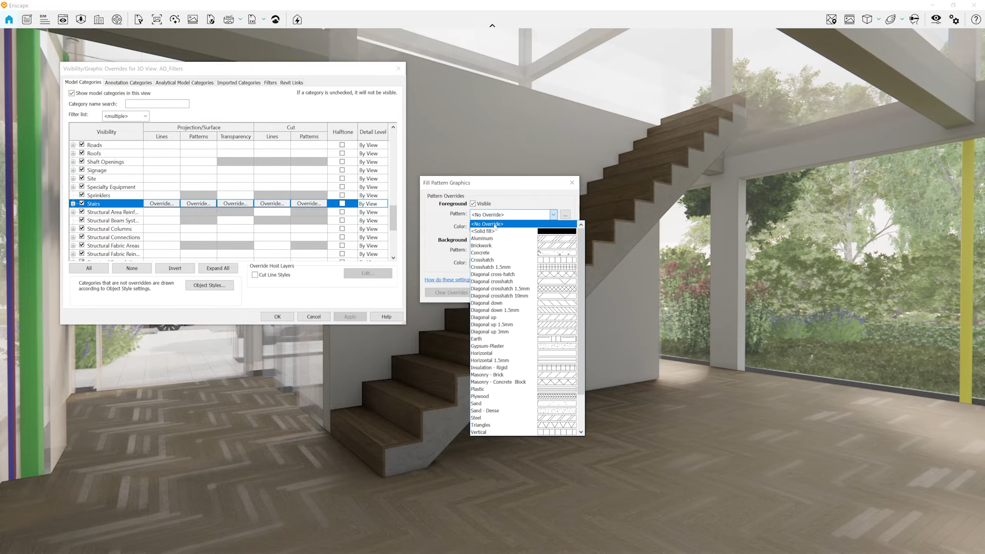 Previously, linked model overrides in Revit were not visible in Enscape. That changes now.