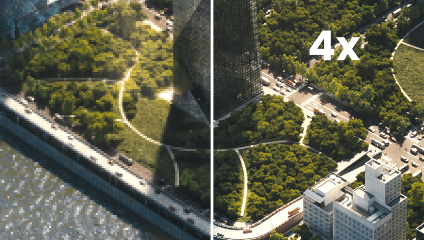 You can fine-tune results for consistency and realism without touching your core design or re-rendering the scene. This is especially valuable for street-level views, aerial shots, and large-scale environments.